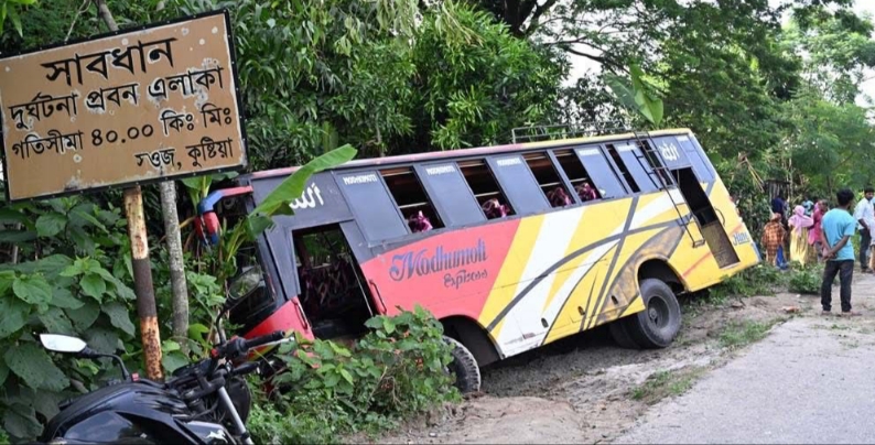 প্রত্যক্ষদর্শীরা জানান, সোমবার (৬ অক্টোবর) বেলা ২টার দিকে ‘ঢাকা মেট্রো–ব ০২–০৫৯৪’ নম্বরের বাসটি কুষ্টিয়া থেকে দৌলতদিয়া যাচ্ছিল। পথে মোড়াগাছা এলাকায় পৌঁছে চালক নিয়ন্ত্রণ হারিয়ে দাঁড়িয়ে থাকা পাখি ভ্যানকে চাপা দেয়। পরে বাসটি সড়কের পাশে পড়ে যায়। দুর্ঘটনার পর চালক ও তার সহযোগীরা পালিয়ে যায়।