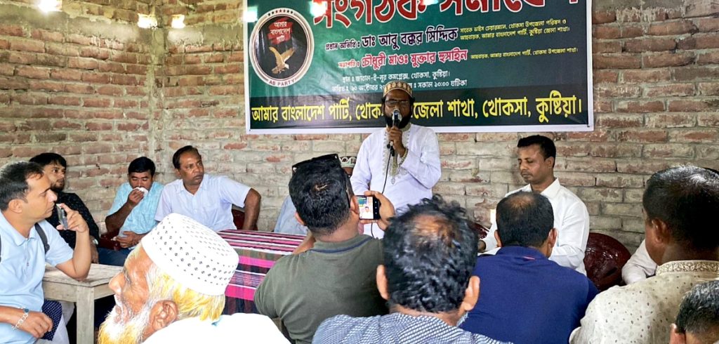 অনুষ্ঠানে সভাপতিত্ব করেন চৌধুরী মাওলানা মুক্তার হোসাইন, আহবায়ক খোকসা উপজেলা শাখা, আমার বাংলাদেশ পার্টি (এবি পার্টি)।