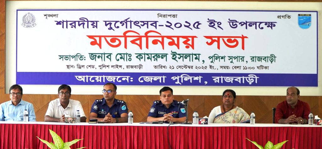 আসন্ন শারদীয় দুর্গাপূজা-২০২৫ উপলক্ষে রাজবাড়ীতে পুলিশ সুপারের মতবিনিময় সভা