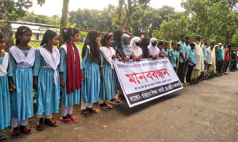 শনিবার (২৭ সেপ্টেম্বর) বিকেলে কলেজের সামনে রাজবাড়ী–কালুখালী সড়কে শিক্ষক-শিক্ষার্থী, অভিভাবক ও স্থানীয় এলাকাবাসীর উদ্যোগে এ মানববন্ধন কর্মসূচি পালিত হয়।