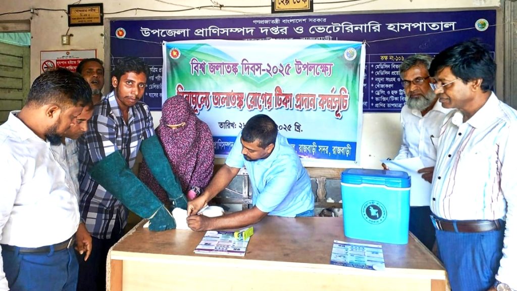 জেলা প্রাণিসম্পদ কর্মকর্তা প্রকাশ রঞ্জন বিশ্বাস বলেন, “বিশ্ব জলাতঙ্ক দিবস উপলক্ষে সারা দেশে বিনামূল্যে জলাতঙ্ক প্রতিরোধক টিকা প্রদান করা হচ্ছে। রাজবাড়ী জেলাতেও প্রতিটি উপজেলা প্রাণিসম্পদ দপ্তরে এই টিকা দেওয়া হচ্ছে। হাসপাতালগুলোতে নির্দিষ্ট পরিমাণ টিকা সরবরাহ করা হয়েছে, যা কয়েকদিন বিনামূল্যে প্রদান করা যাবে। পোষা বা গৃহপালিত প্রাণিকে টিকা দেওয়ার জন্য সবাইকে উৎসাহিত করা হচ্ছে।”
