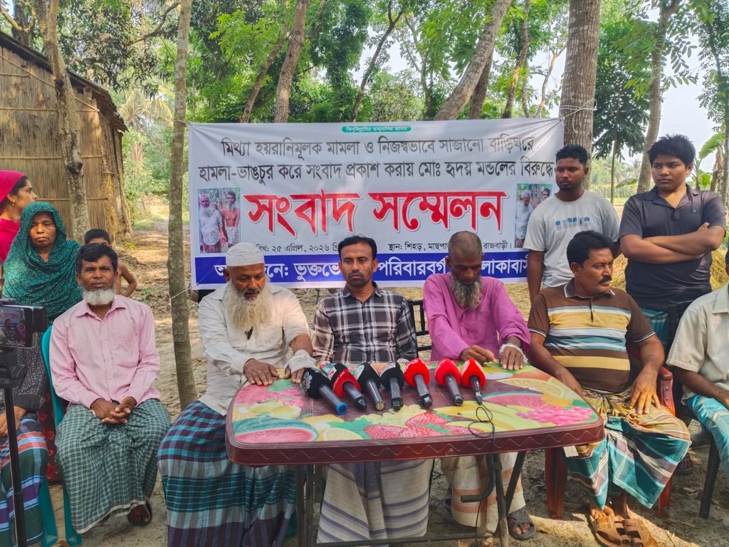 এস,কে পাল সমীর, পাংশা : রাজবাড়ীর পাংশায় জমিজমা সংক্রান্ত বিরোধের ঘটনায় নিজেদের বিরুদ্ধে আনা হামলা, ভাঙচুর, লুটপাট ও থানায় দেয়া অভিযোগকে মিথ্যা দাবি করে সংবাদ সম্মেলন করেছেন অভিযুক্ত পরিবার ও স্থানীয় এলাকাবাসী।