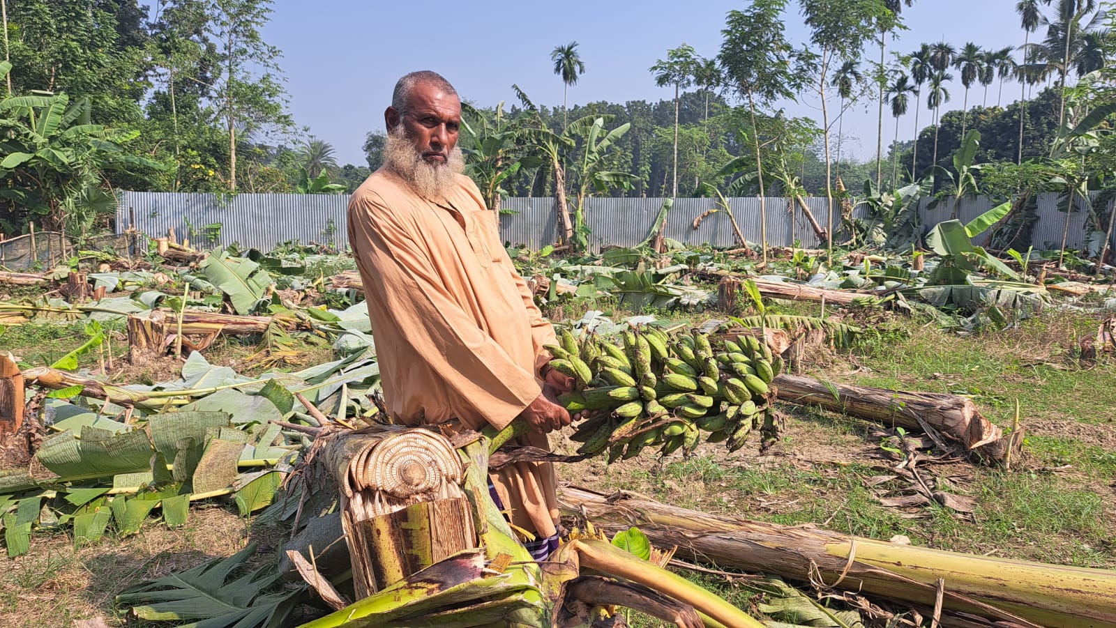রাজবাড়ীতে রাতের আঁধারে কেটে ফেলা হলো কৃষকের ৫০০ কলাগাছ
