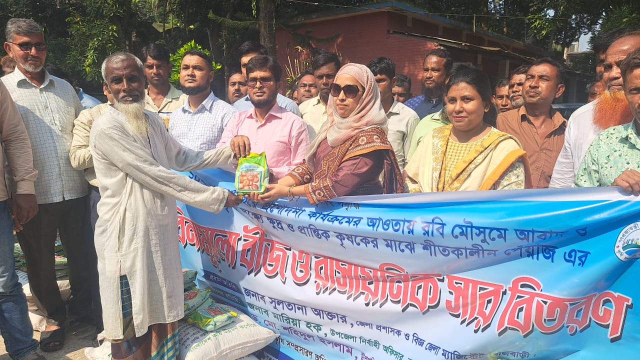 রাজবাড়ীতে ক্ষুদ্র ও প্রান্তিক কৃষকের মাঝে প্রণোদনার বীজ ও রাসায়নিক সার বিতরণ
